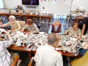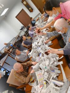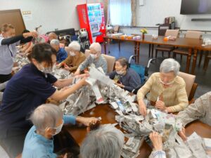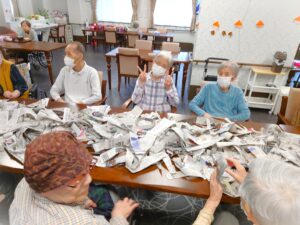 隠す用の新聞紙も入居者様が手作業で切ってくれていました!!